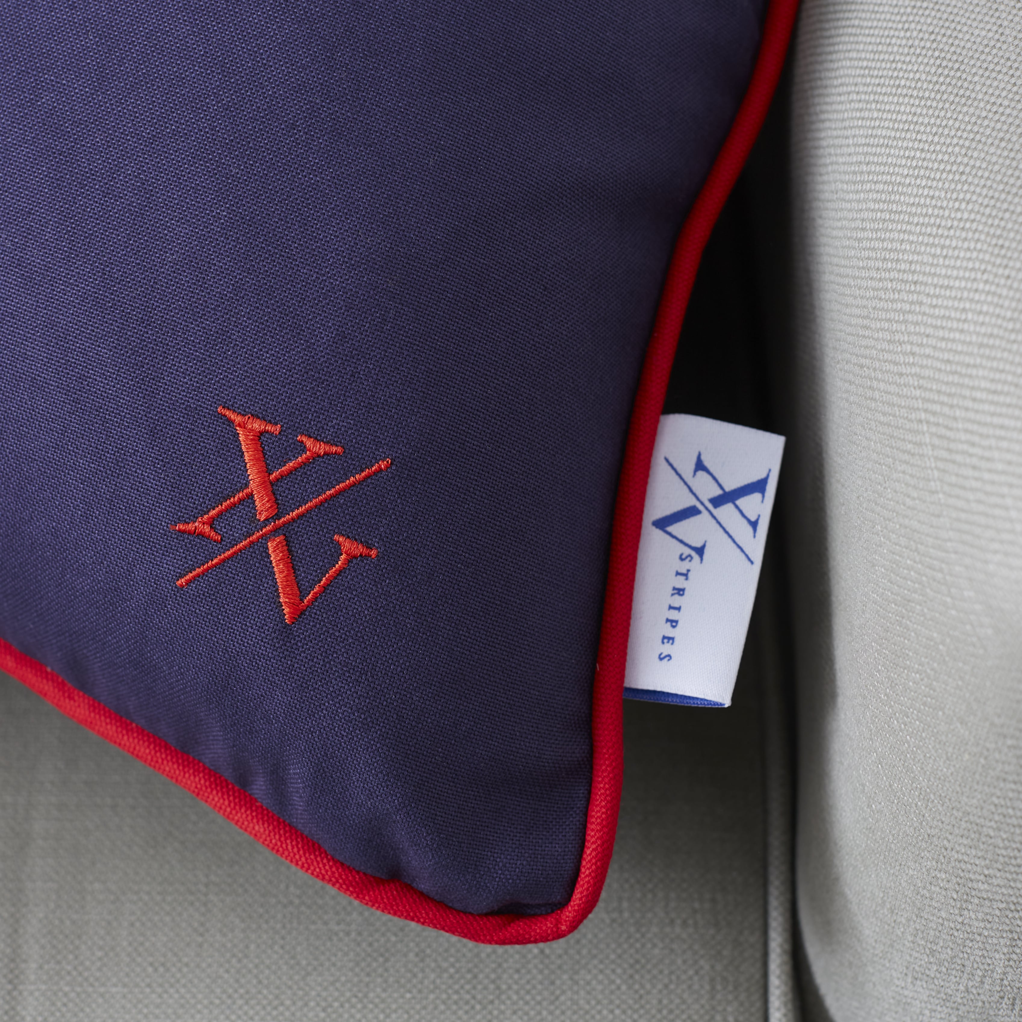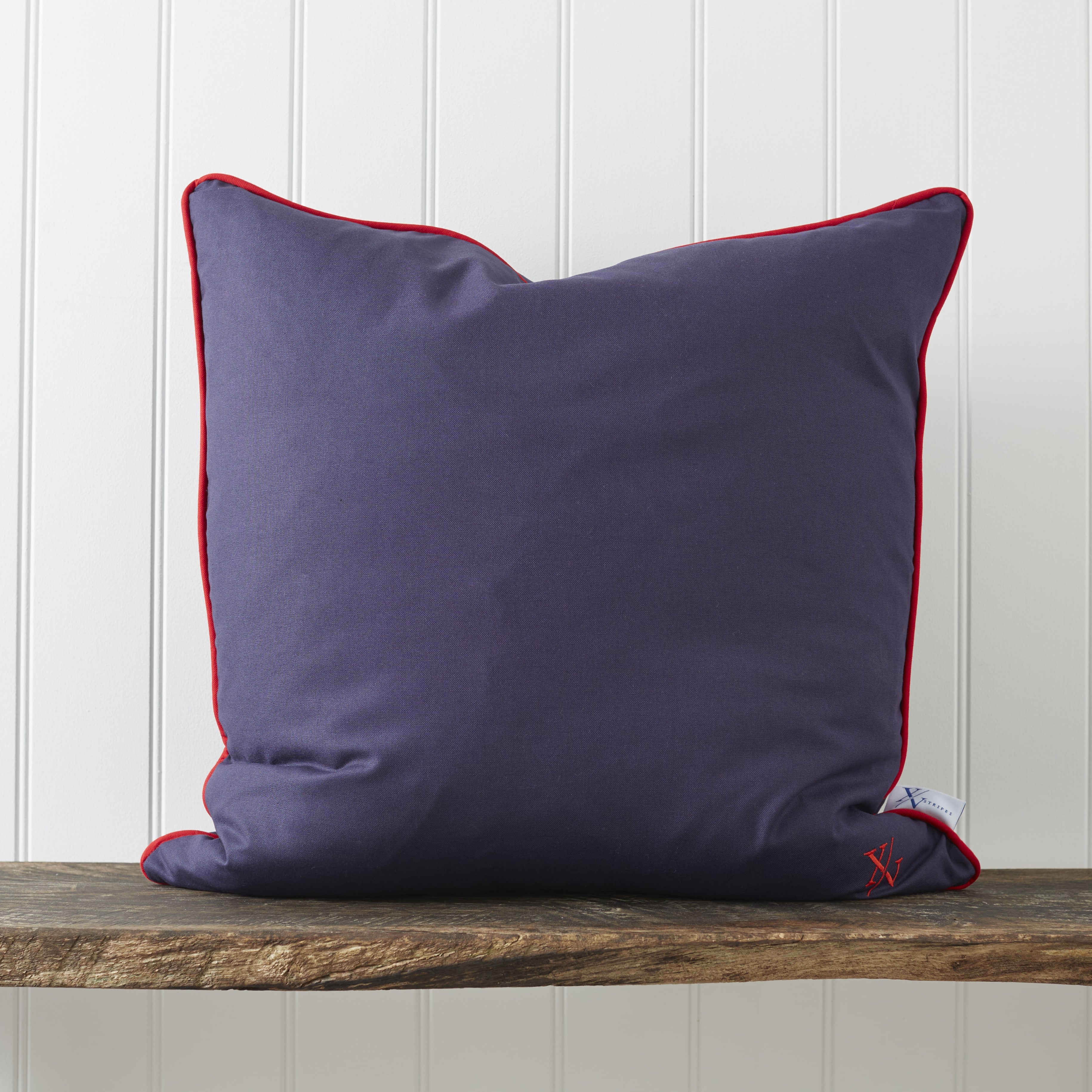 Navy blue cushion, finished with red cord piping. Our Naked Colour range is straight forward and simple. We have choosen a selection of coastal blues to accompany our hand-drawn collections, finished with complimenting cord piping from the range, with some lovely cotton white rope options to create a nautical theme.