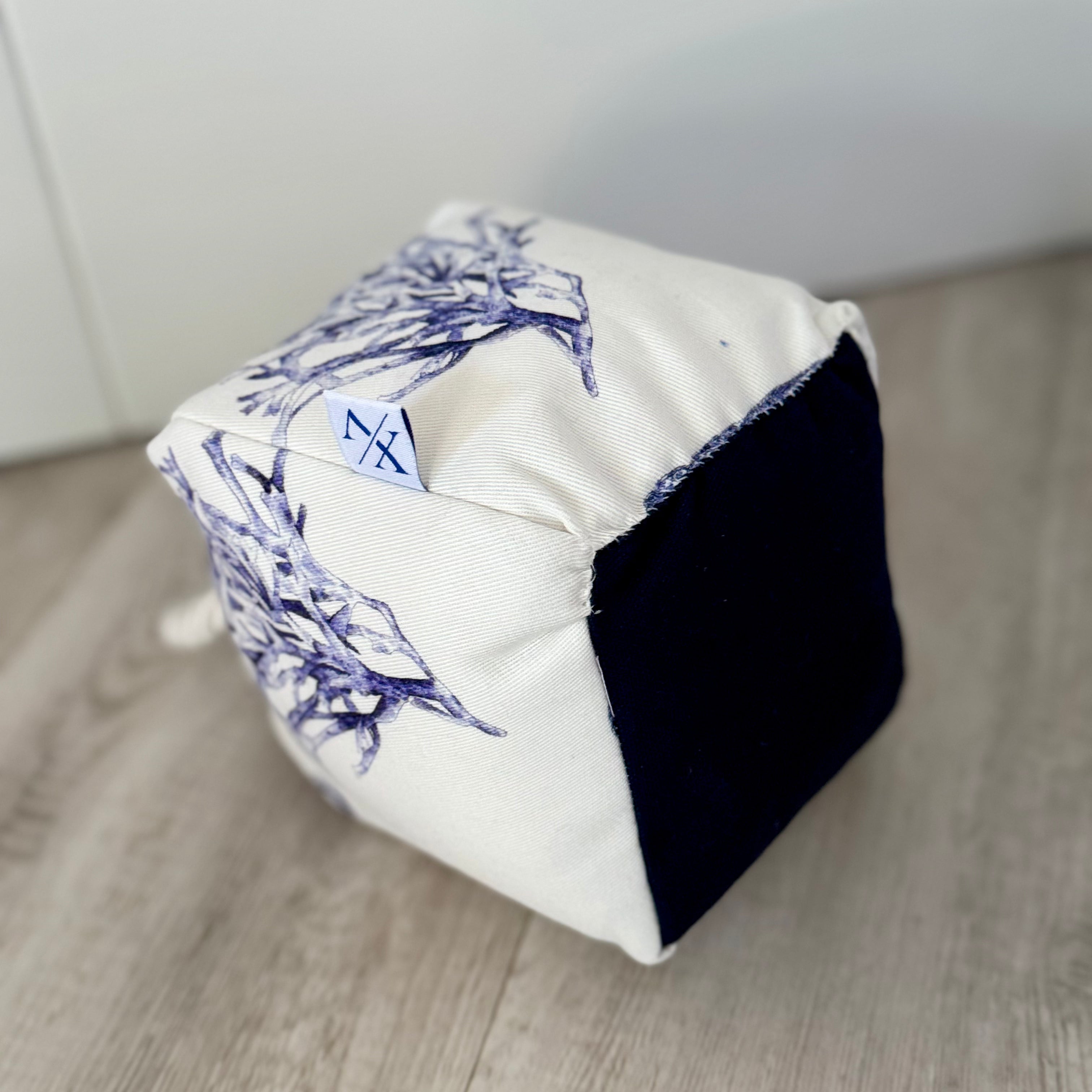 Using our left over fabric pieces, we hand make these little cubes, with handles to make for easy pick up and placement by your doors.