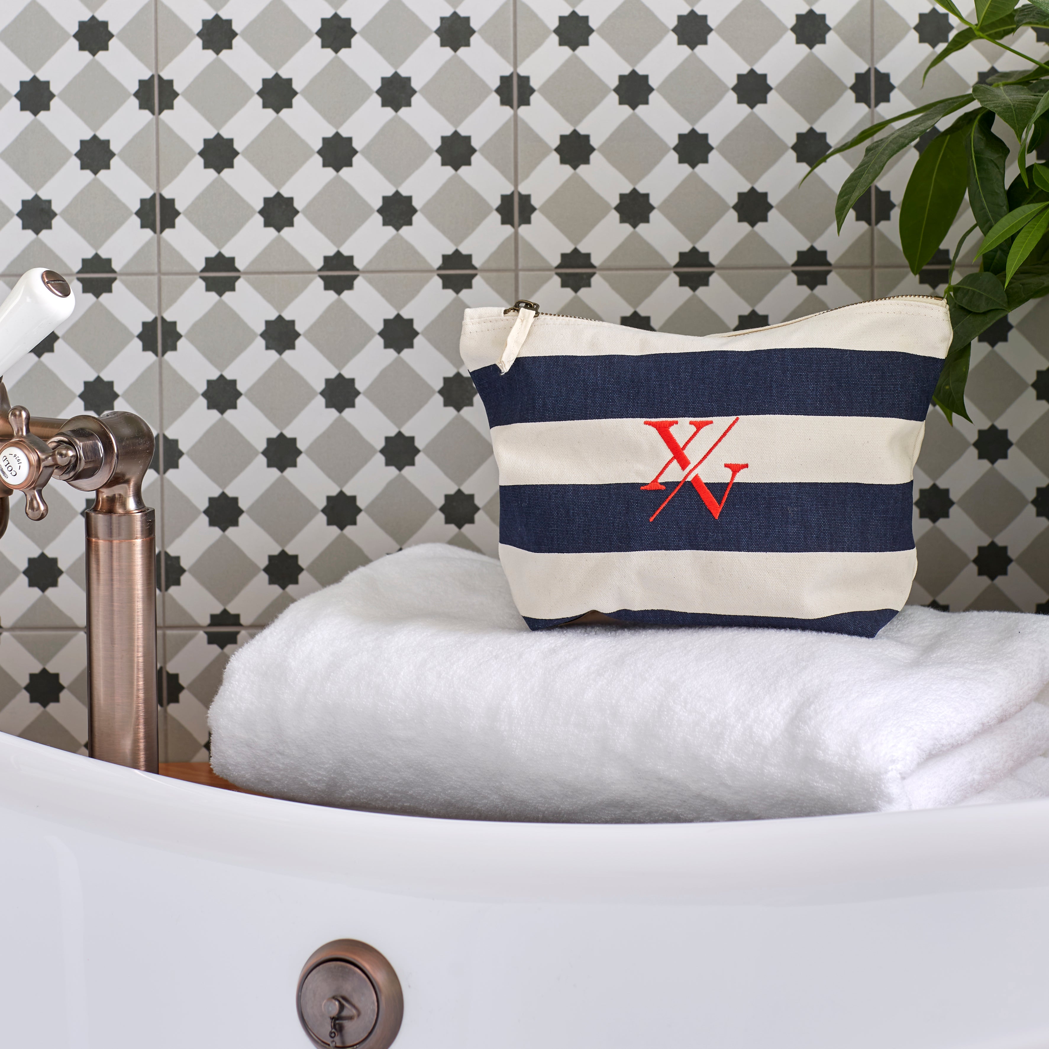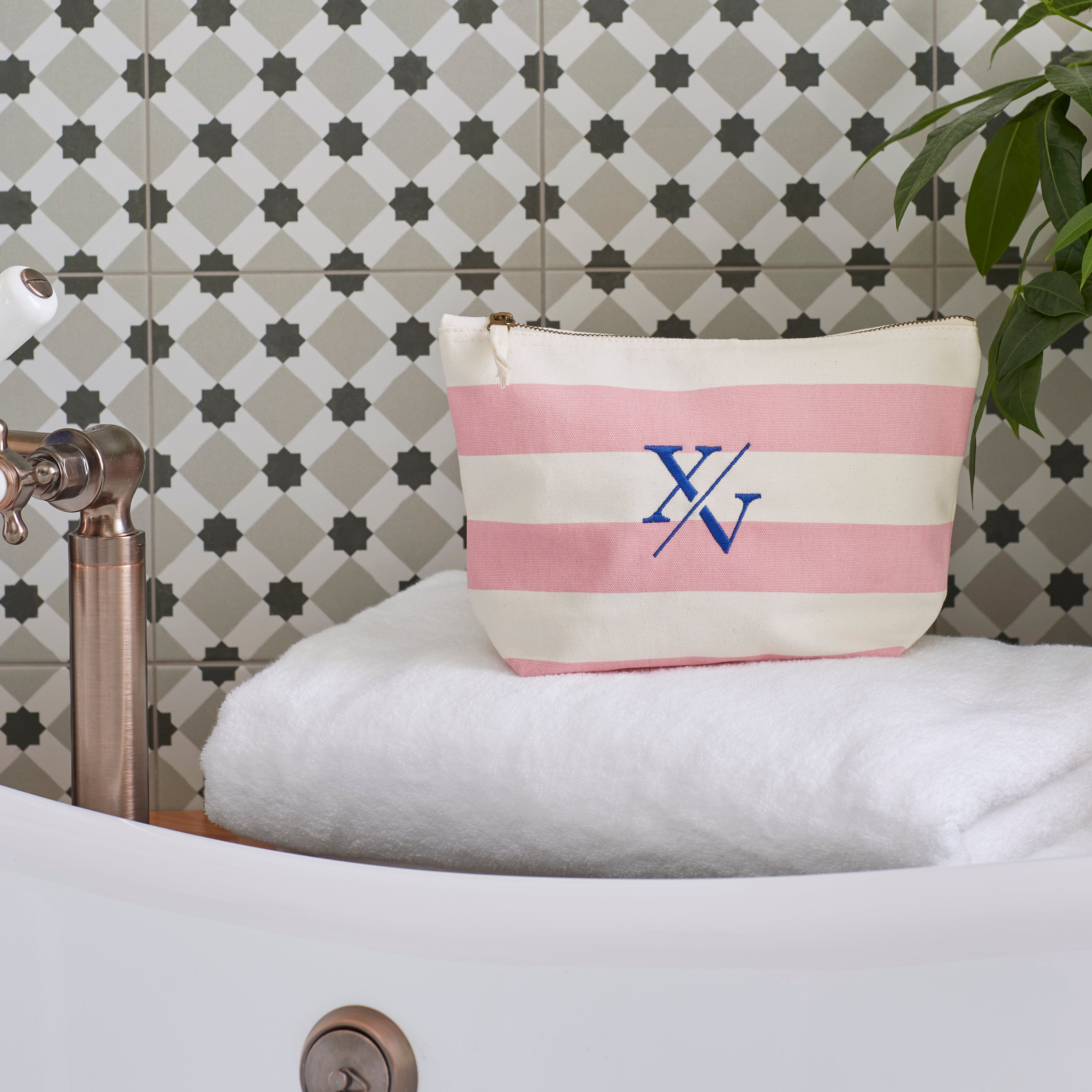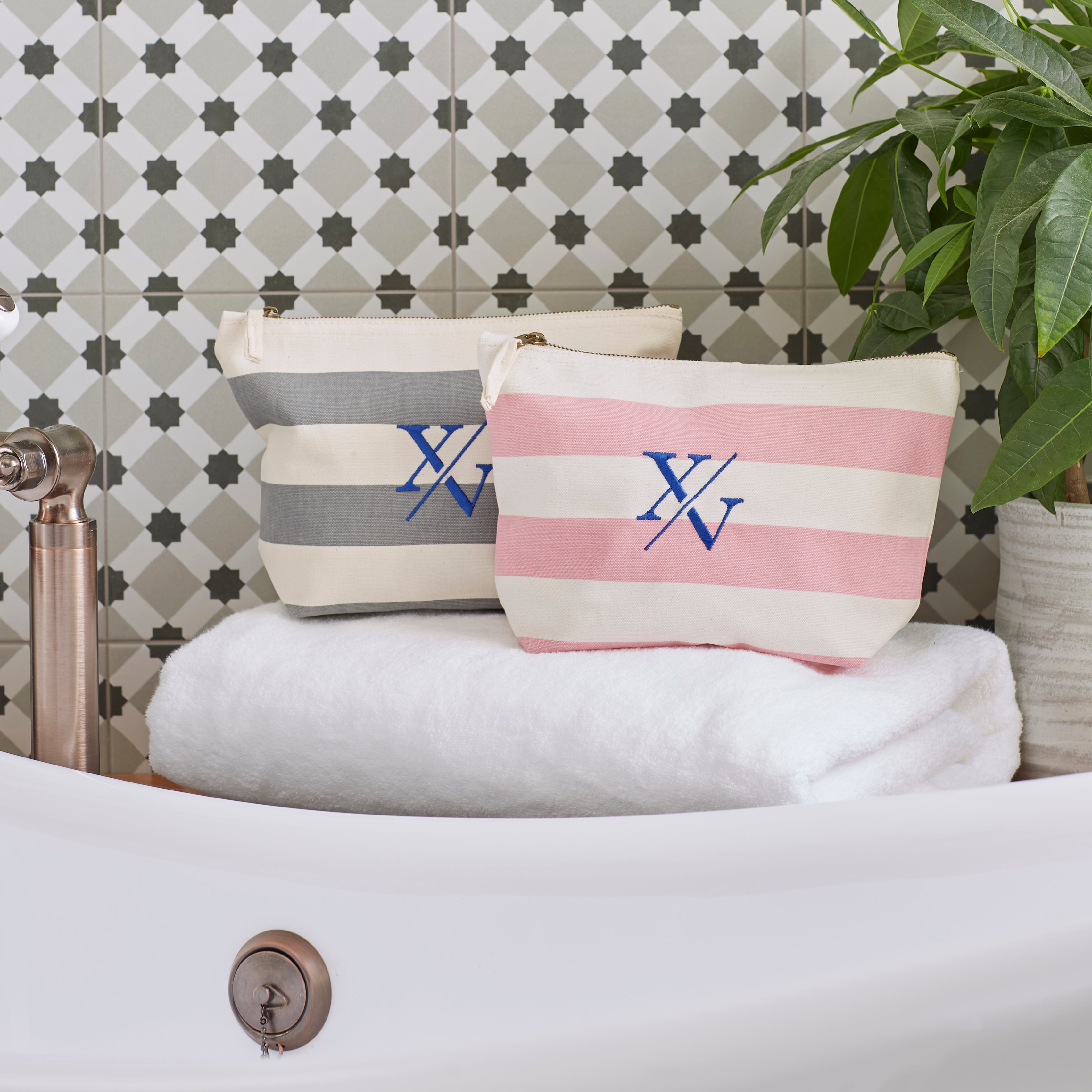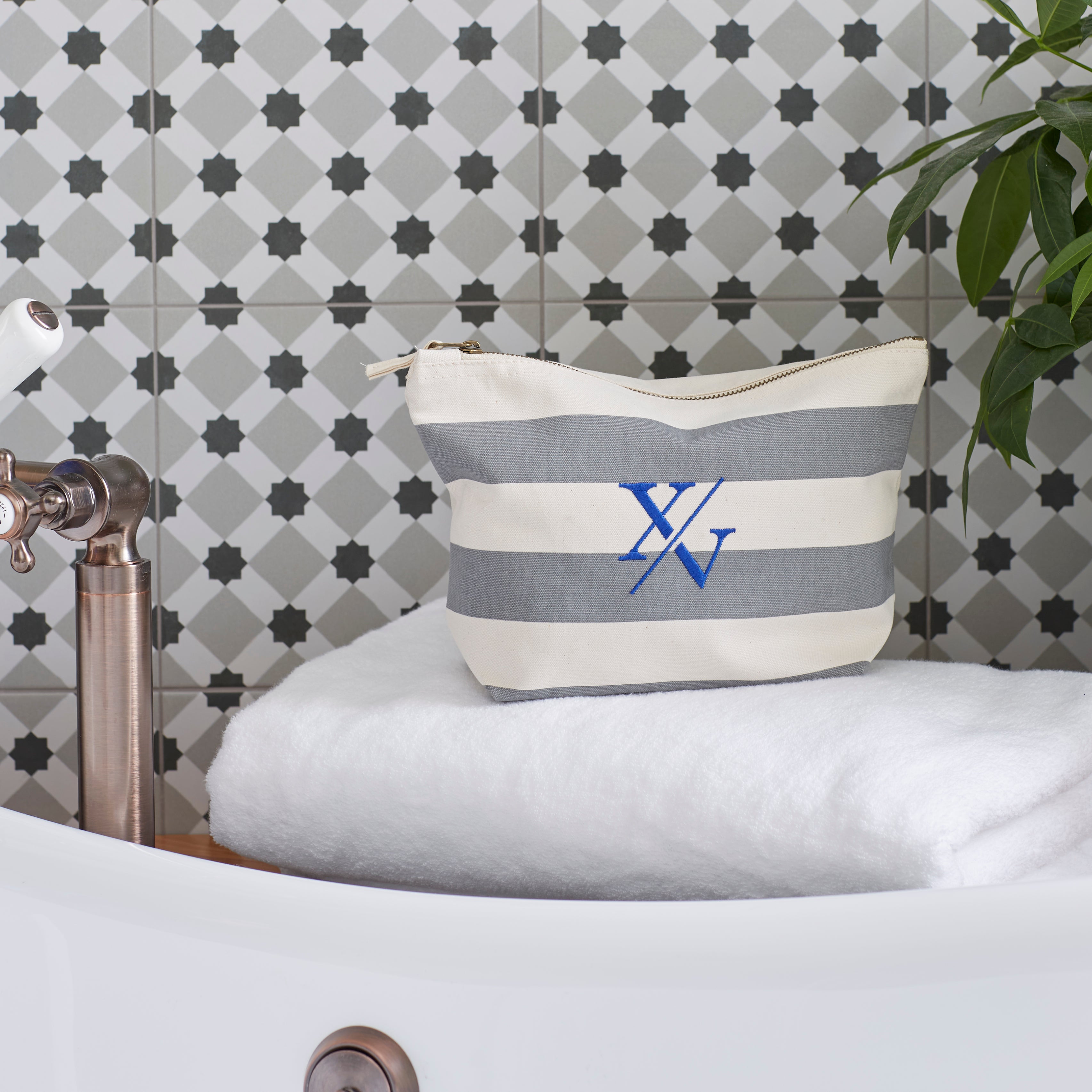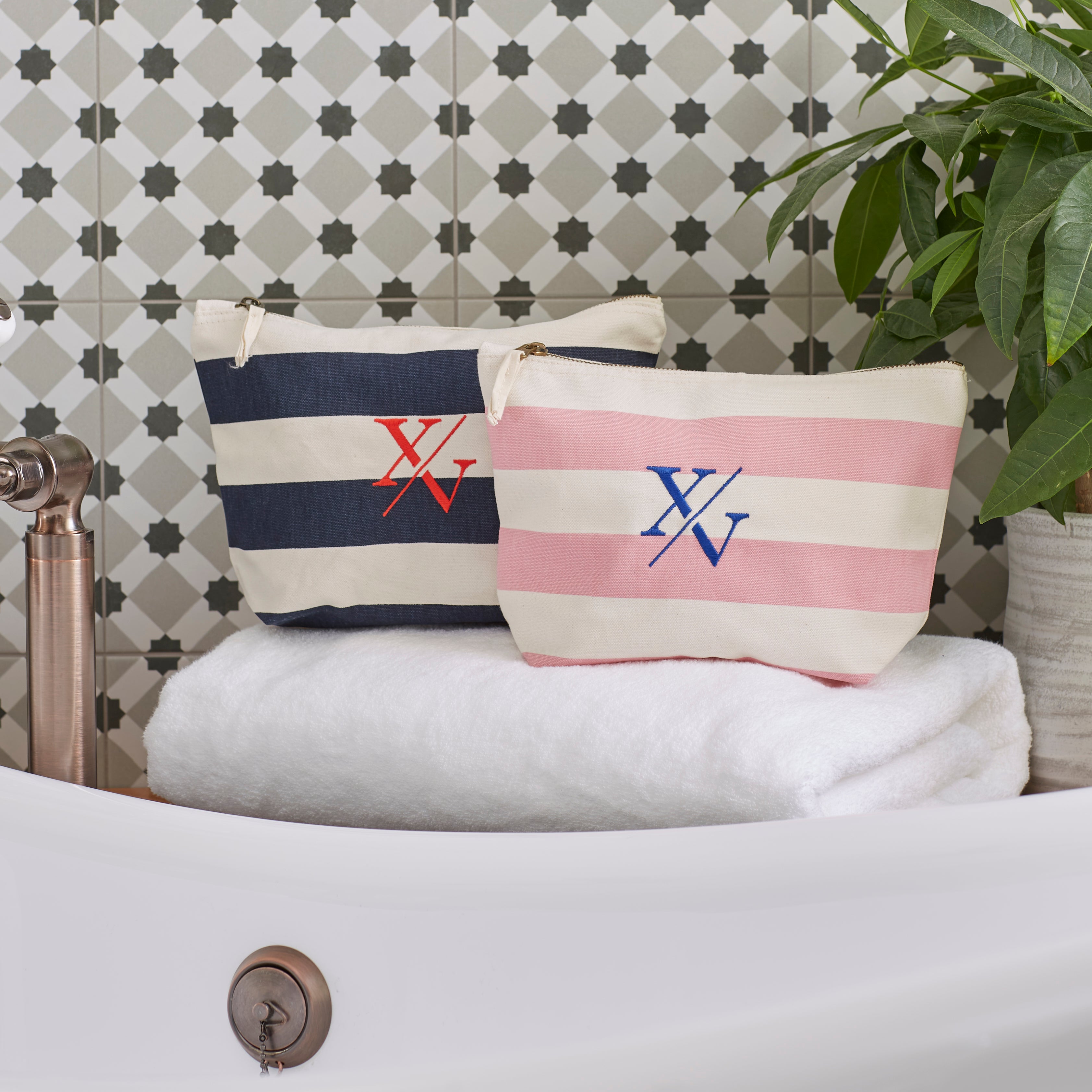 Classic beach styling with the nautical washbag. Made from a premium, heavyweight brushed cotton canvas featuring a coloured stripe print. Zippered closure for multi-purpose use.