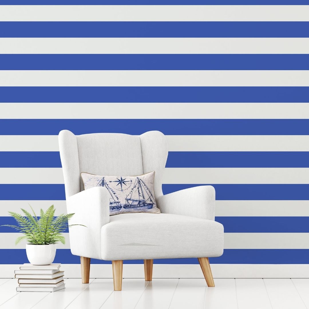 Each stripe boasts a generous width of 16cm, ensuring a powerful visual impact that instantly transforms any space. Elevate your interiors with the timeless appeal of these captivating blue and white stripes.