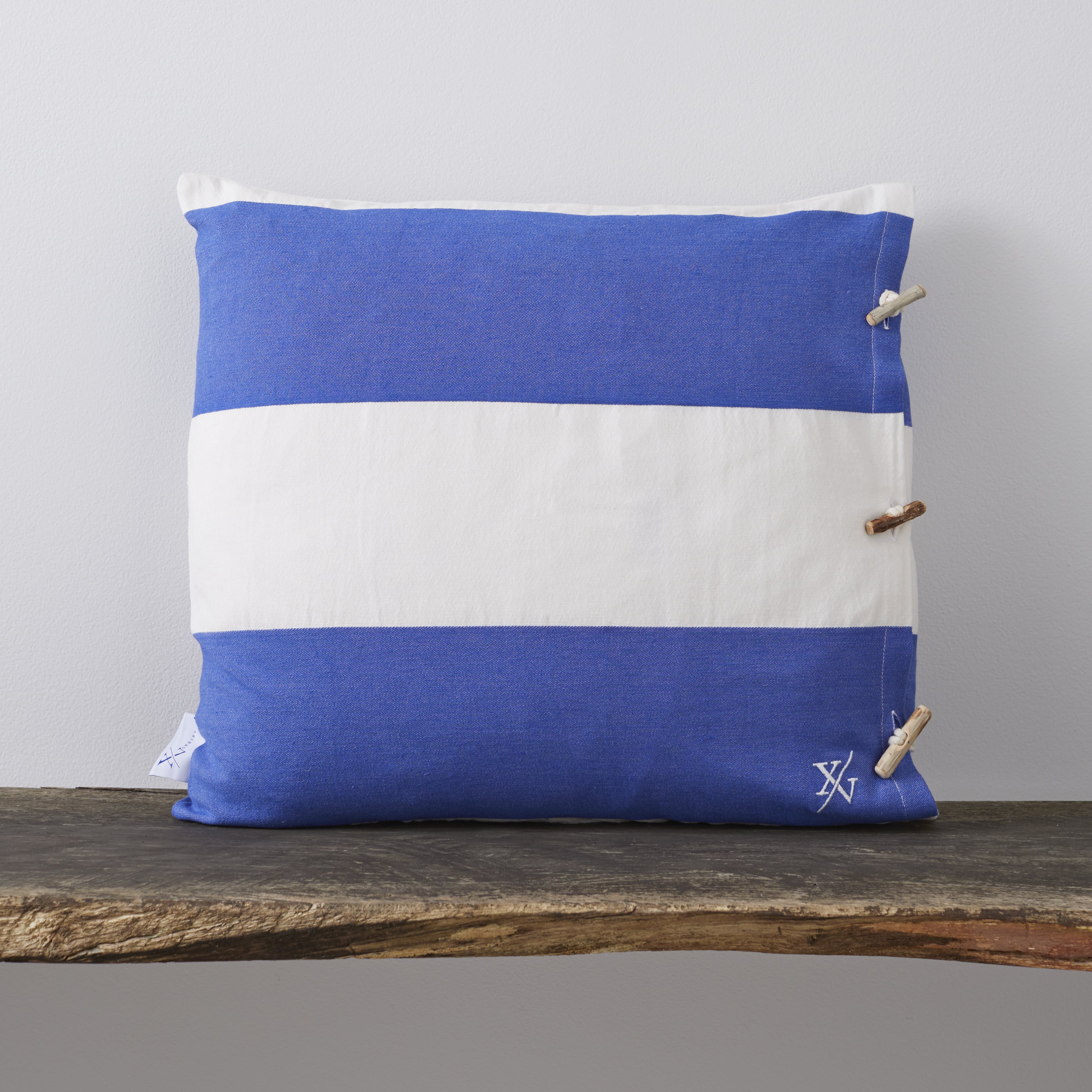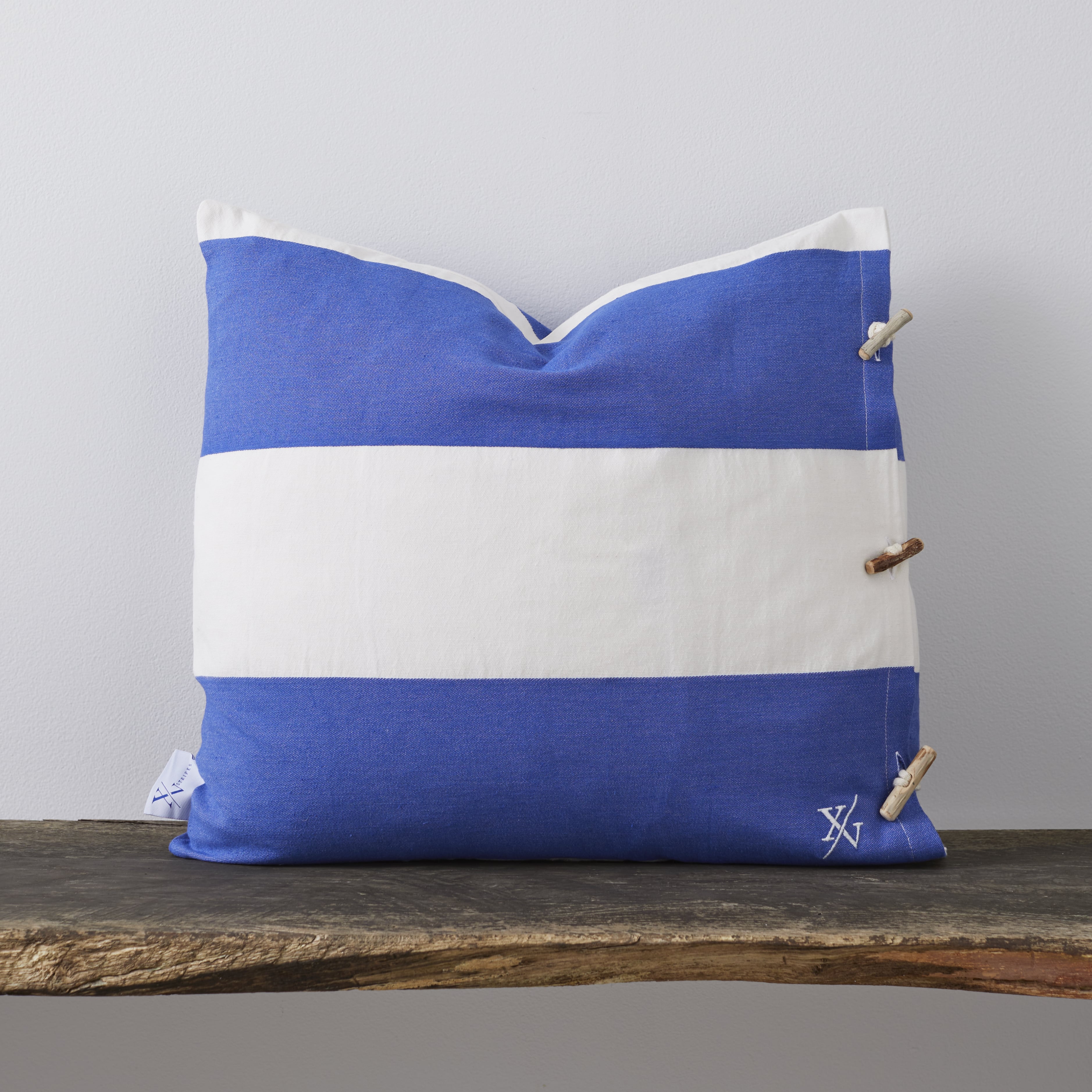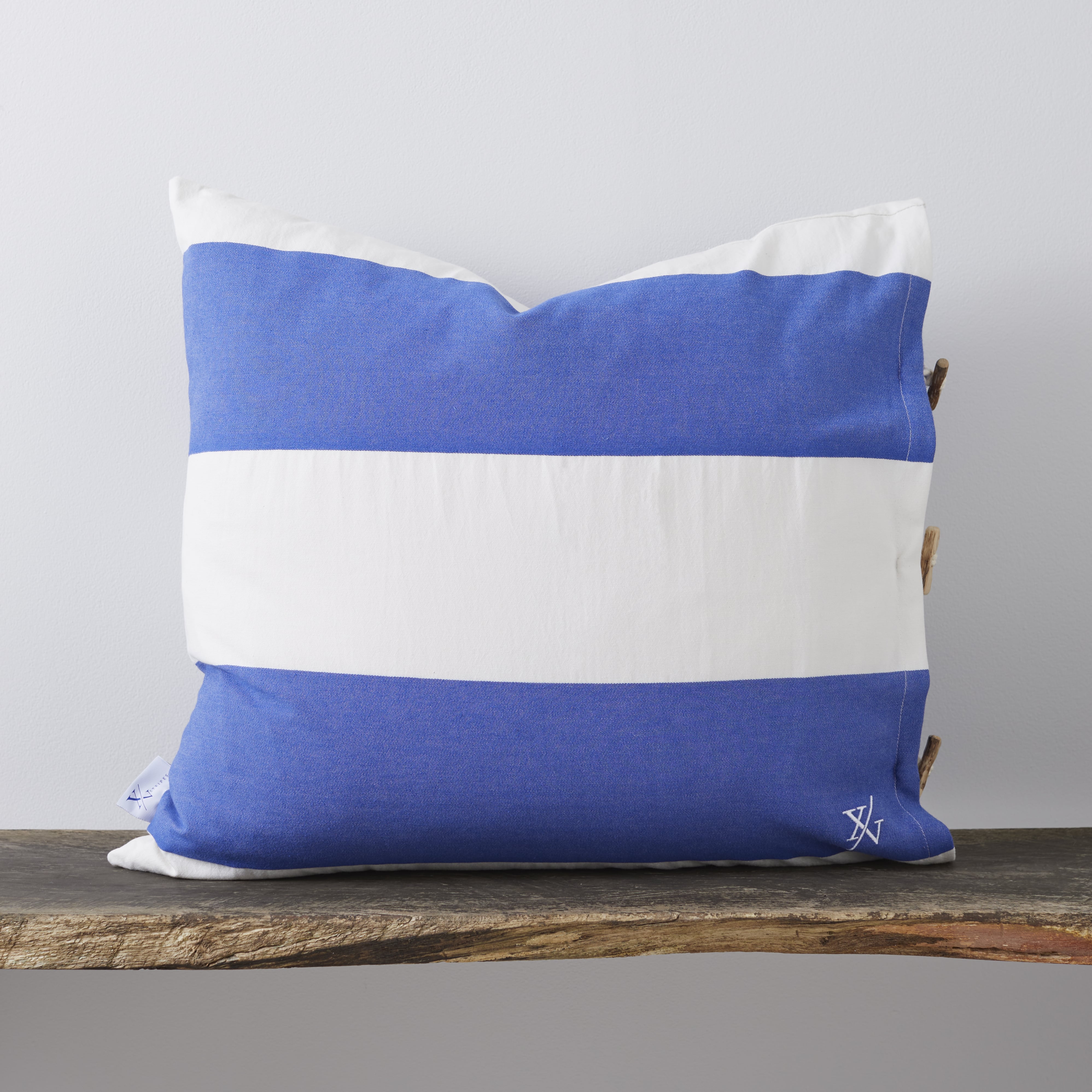 The dazzling blue stripes are unique to the XV Cowes range, using organic cotton and ecological dyes, that are woven together to ensure our stripes remain vibrant. Complemented with hand-made driftwood toggles.