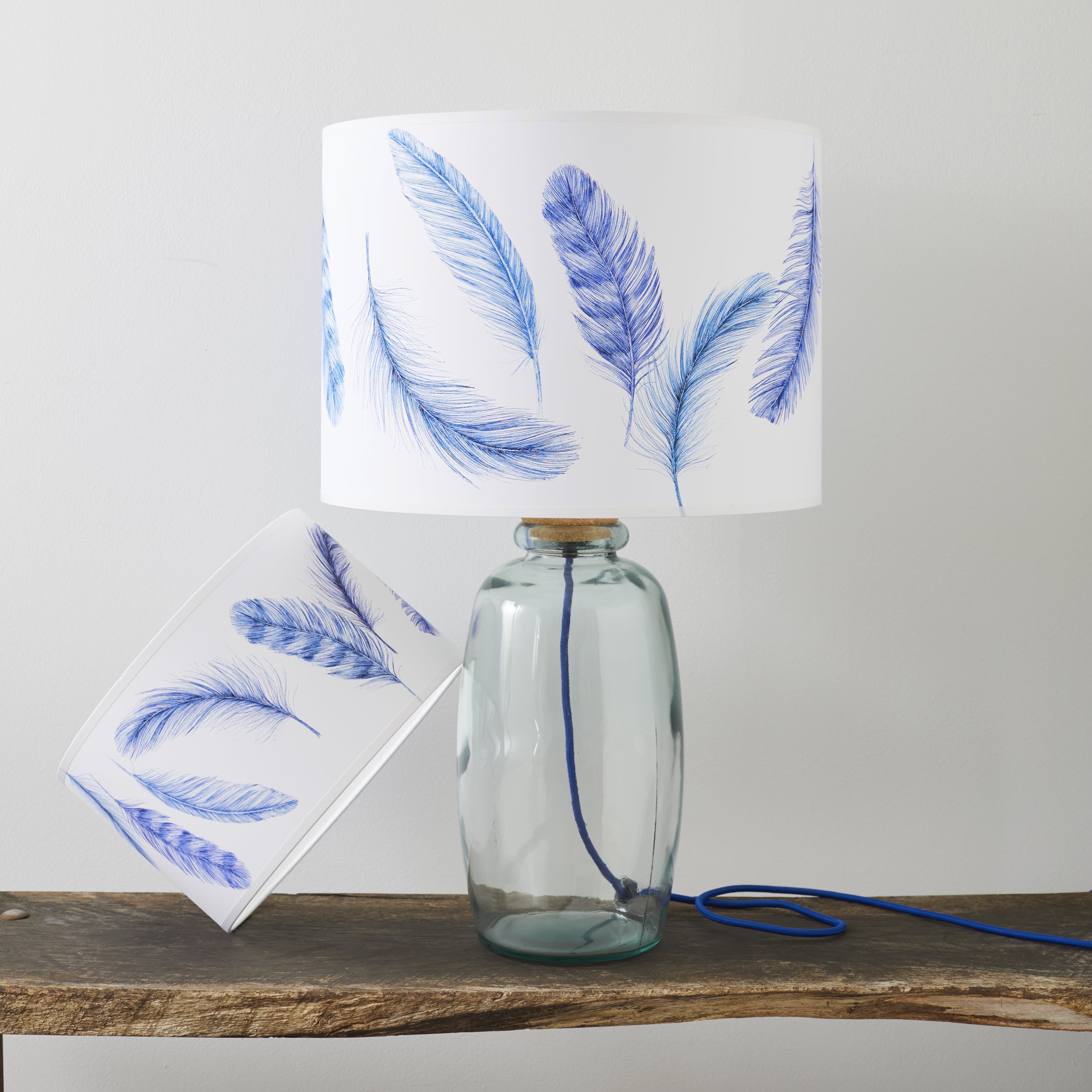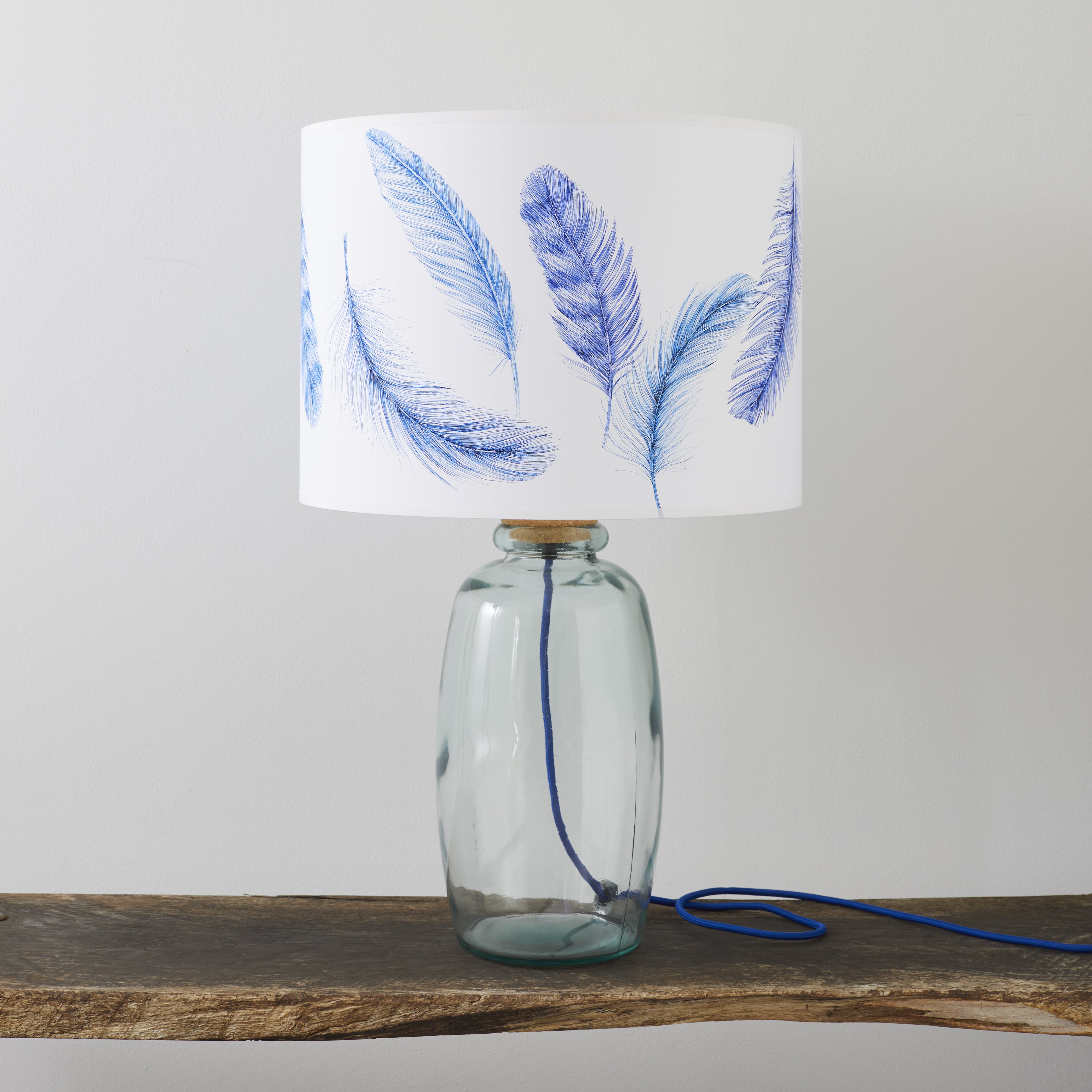 Recycled Glass Lamp, with Feathers Shade (30cm)