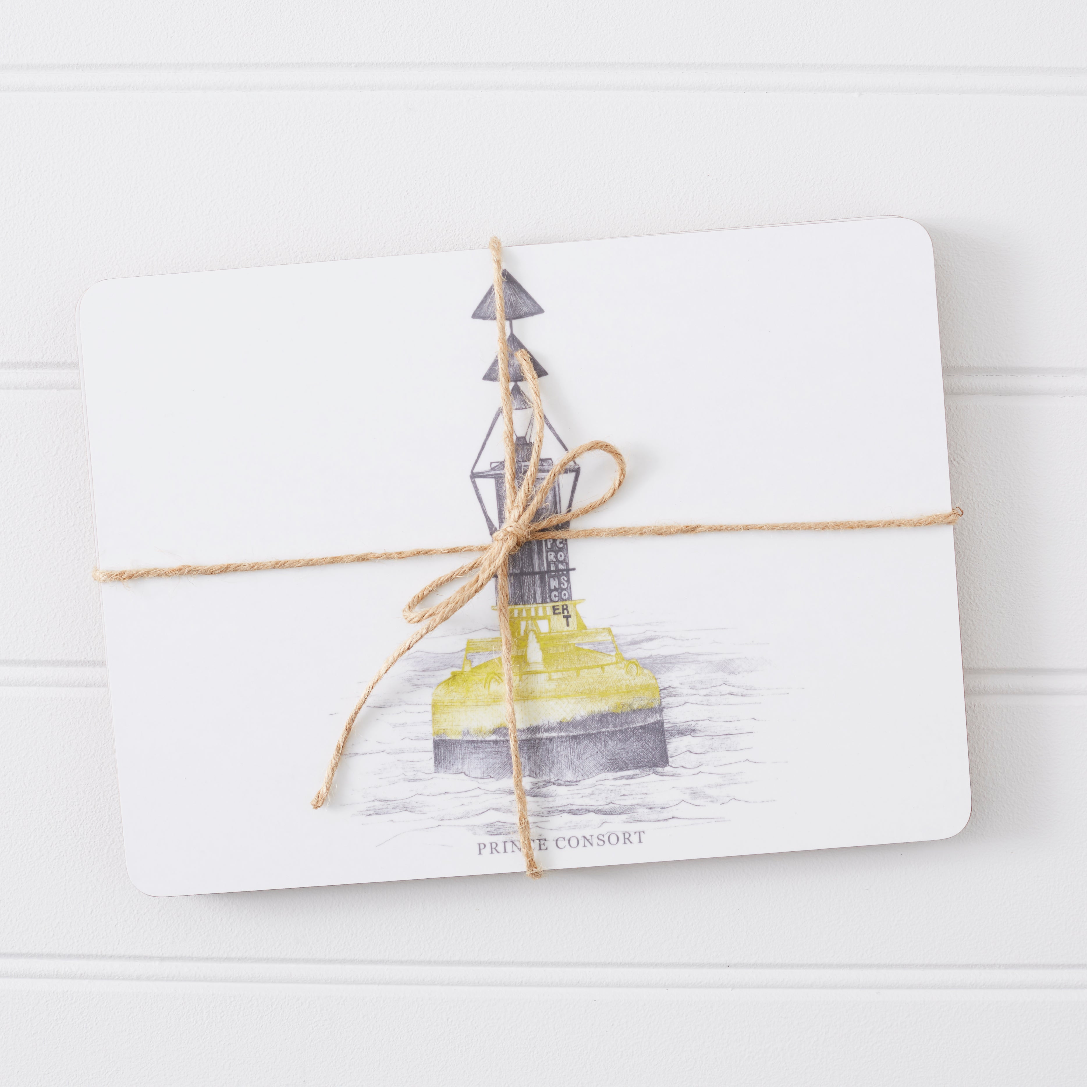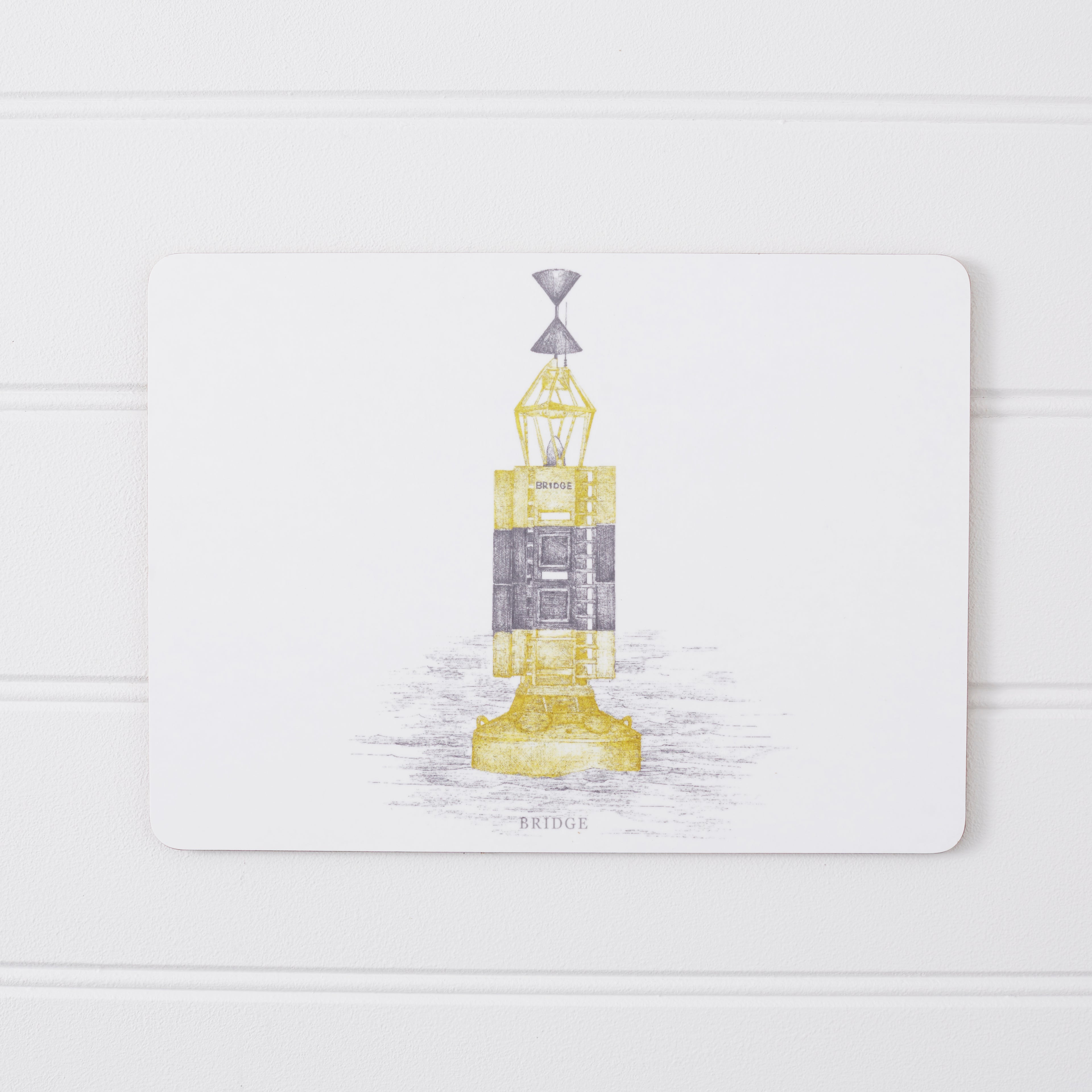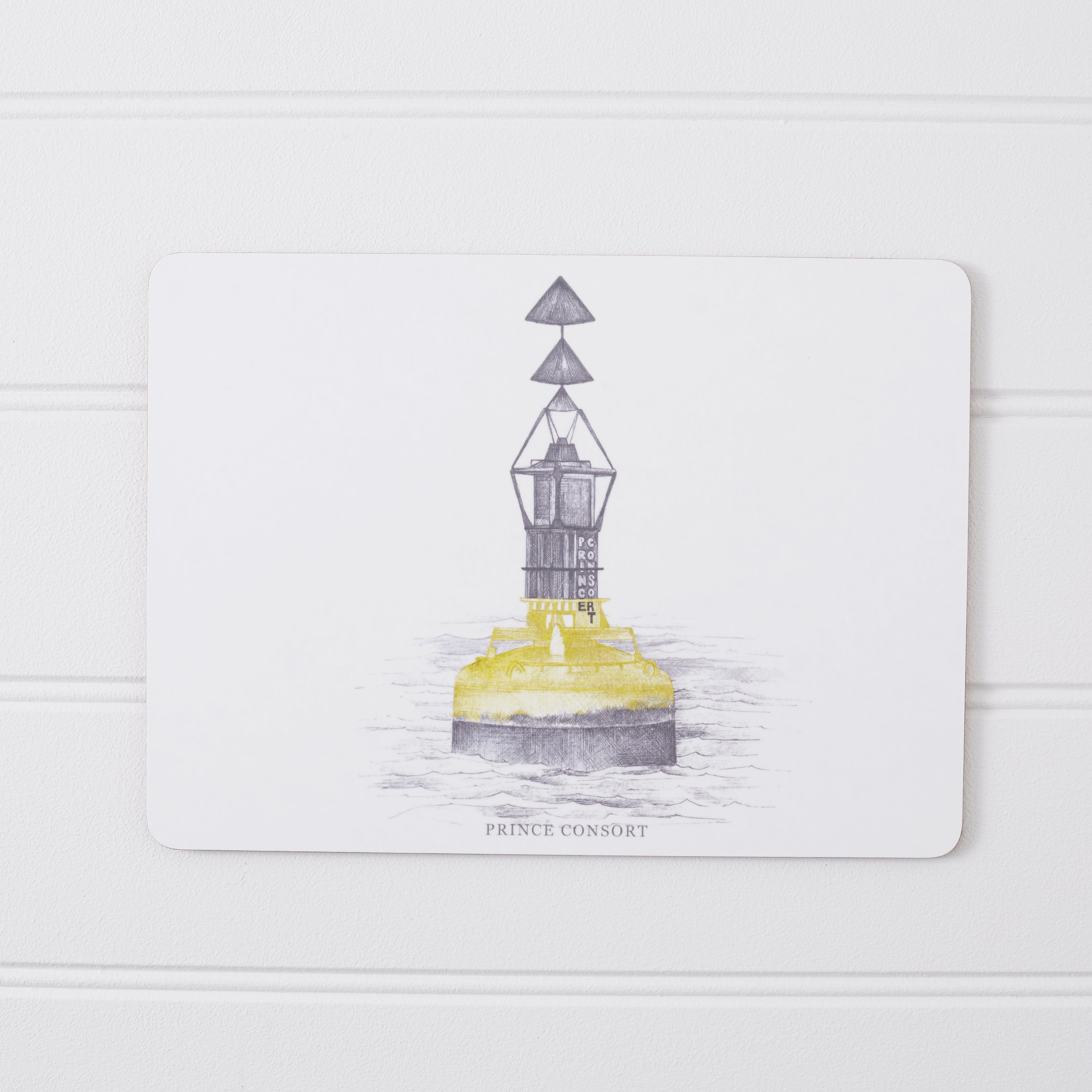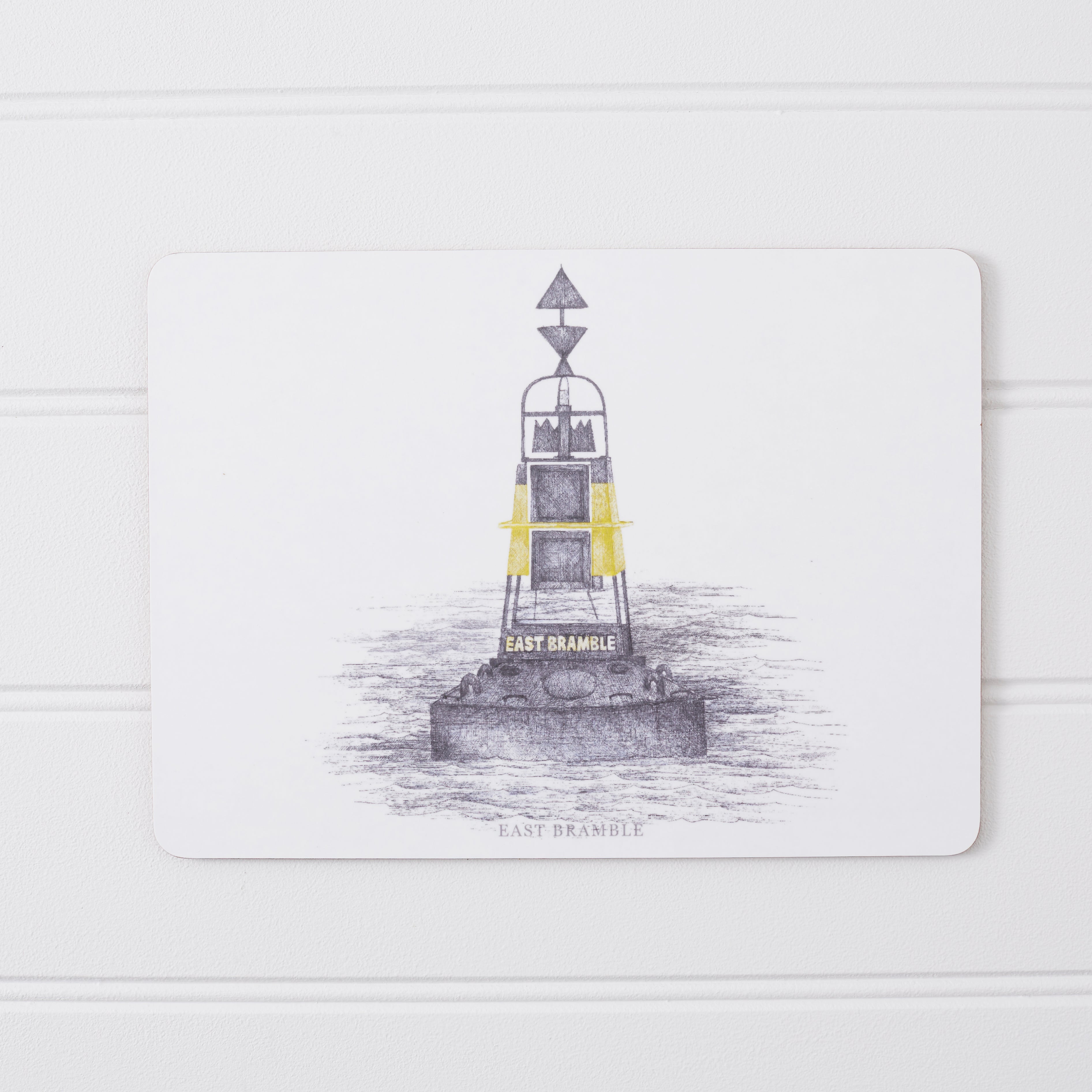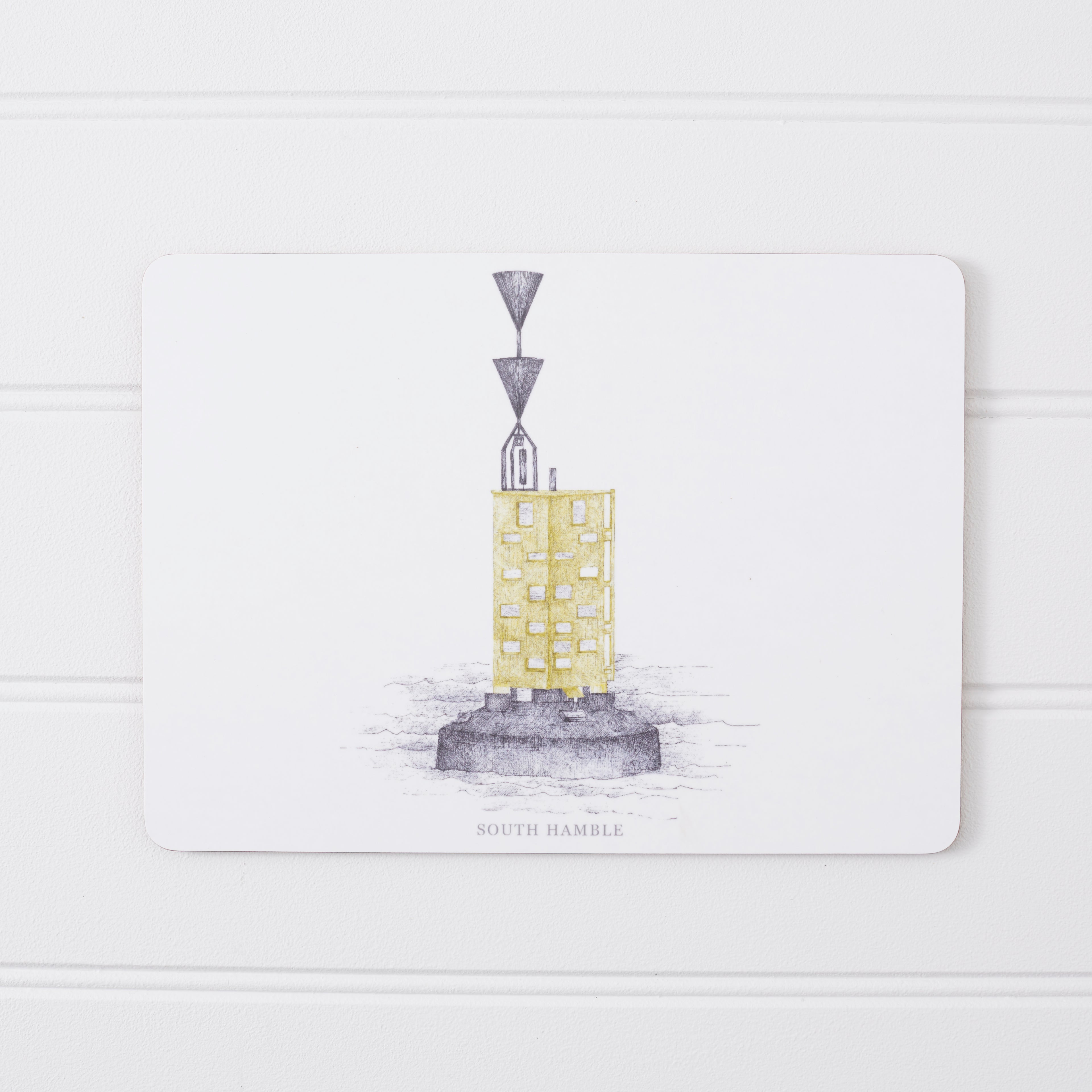 Working with our familar hand-drawn cardinal buoy drawings, we have created a set of four placemats to include all four points of the compass. North (Prince Consort), East (East Bramble), South (South Hamble) and West (Bridge), all inspired from our coastal playground around the South Coast of England.