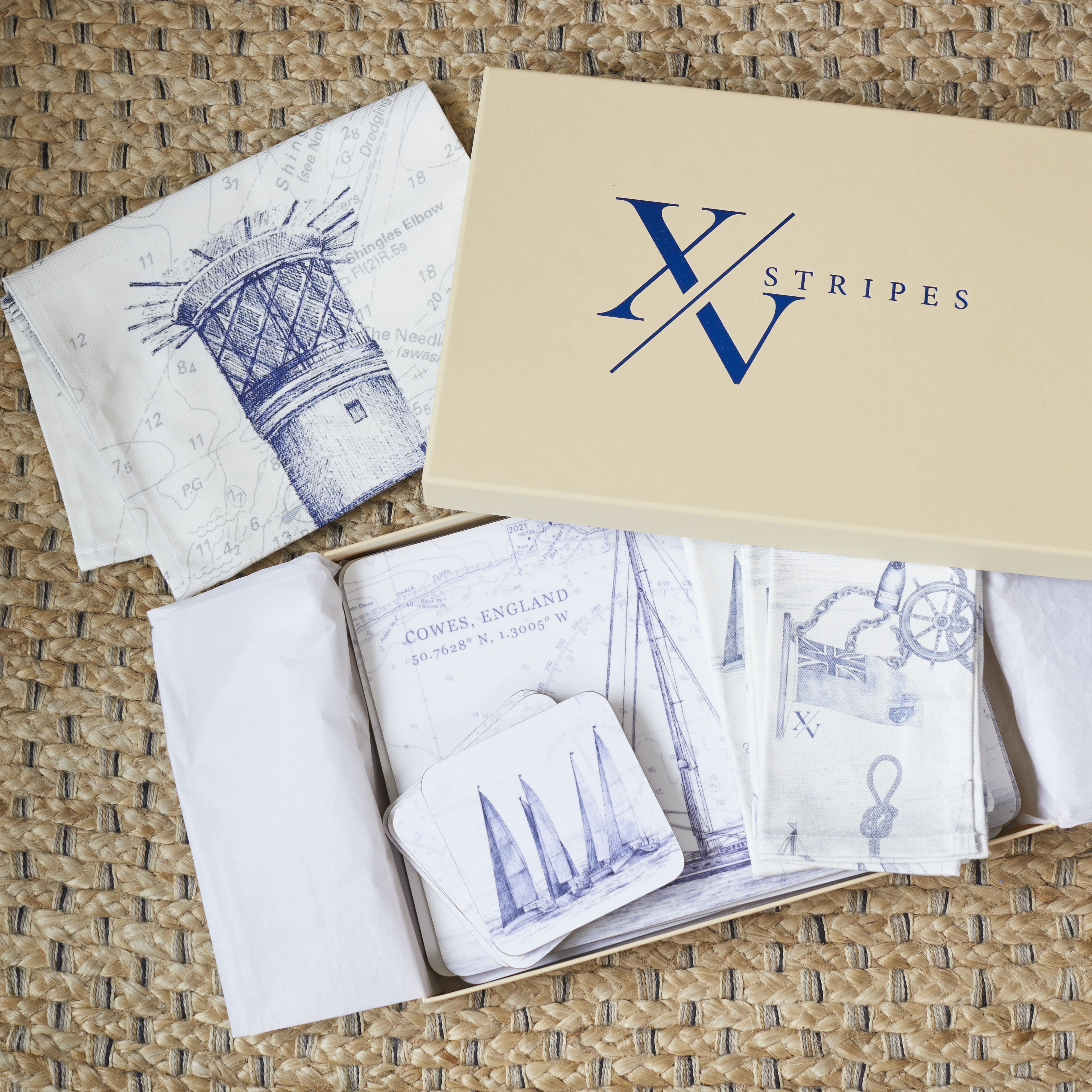 Nautical images drawn from our own coastal playground, created from our Cowes Collection, this gift box is perfect for any seafairing or coastal home.